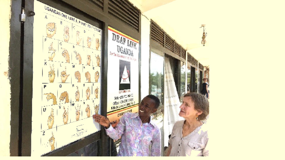 Deaf Link Uganda (DLU) has a small but well-organised office which is the organisation’s headquarters in Munyonyo, a Kampala suburb. The office is on the first floor of a large building, a couple of kilometres from Kampala, Uganda’s capital, close to Ggaba and Lake Victoria. The building has many different tenants that includes a coffee shop, a massage parlour and various retail shops selling handicrafts and different goods. DLU’s office is close to the main Munyonyo road with strolling people and nice green vegetation. There’re lots of cars, motorbikes, called boda-bodas and bicycles.
